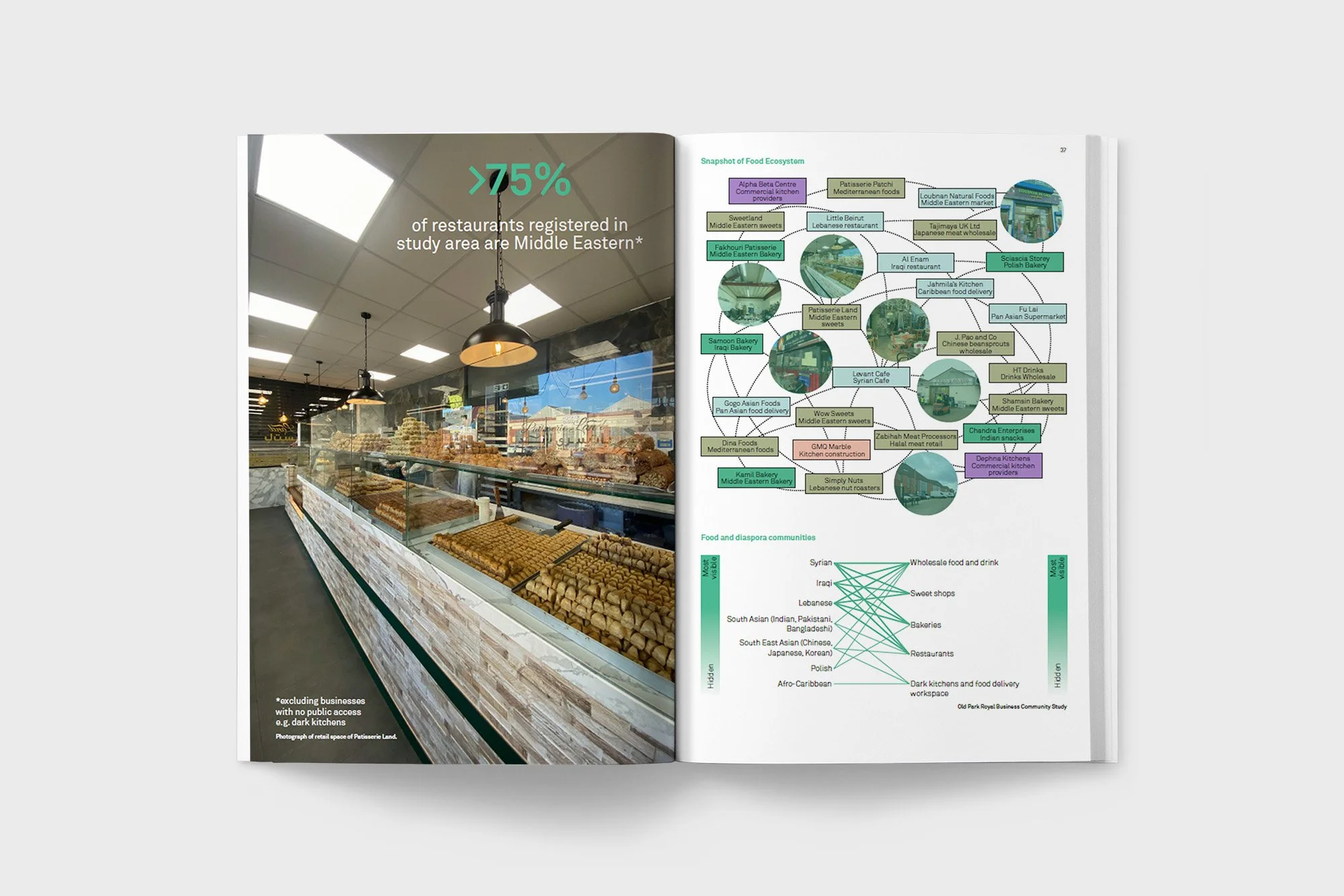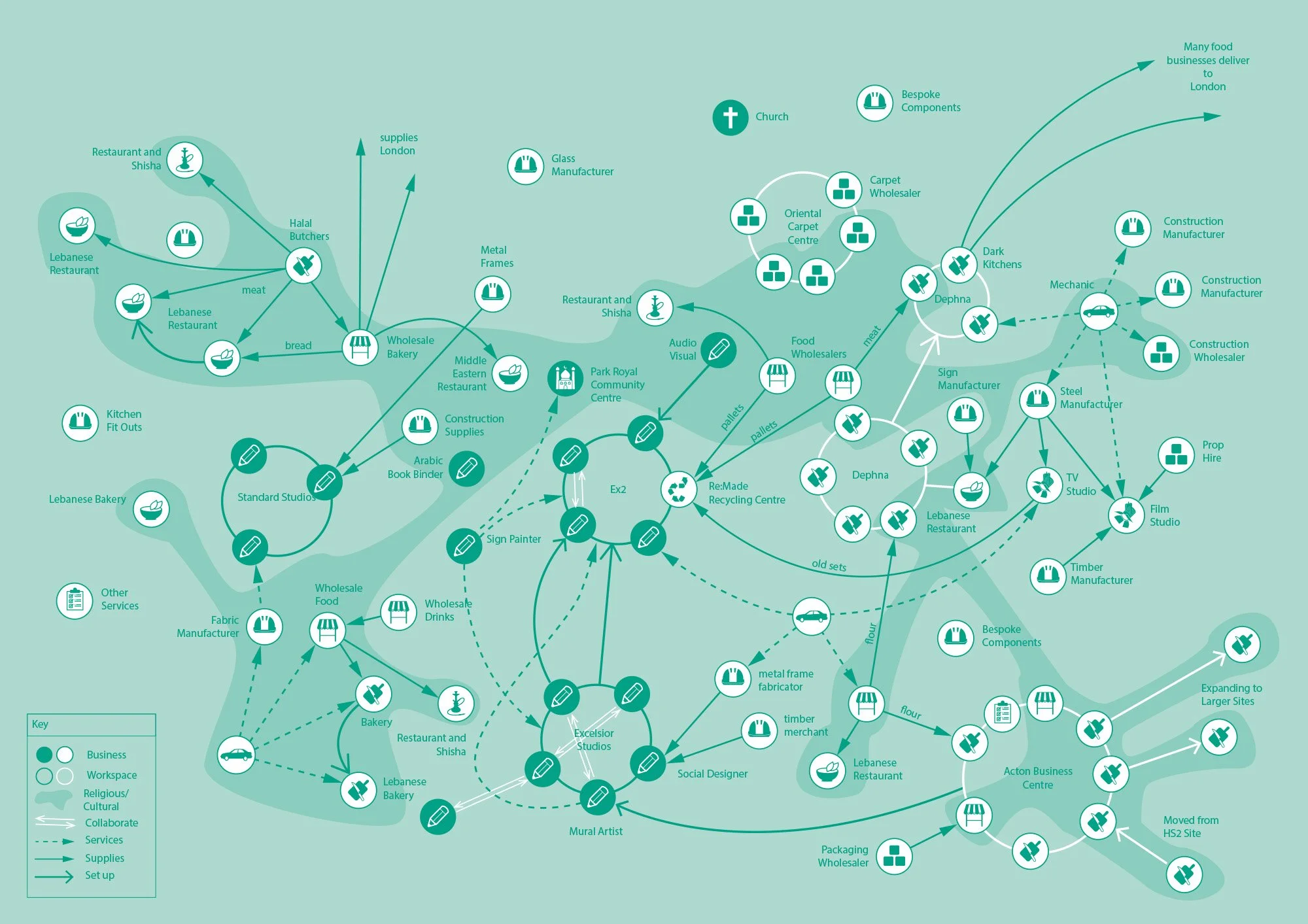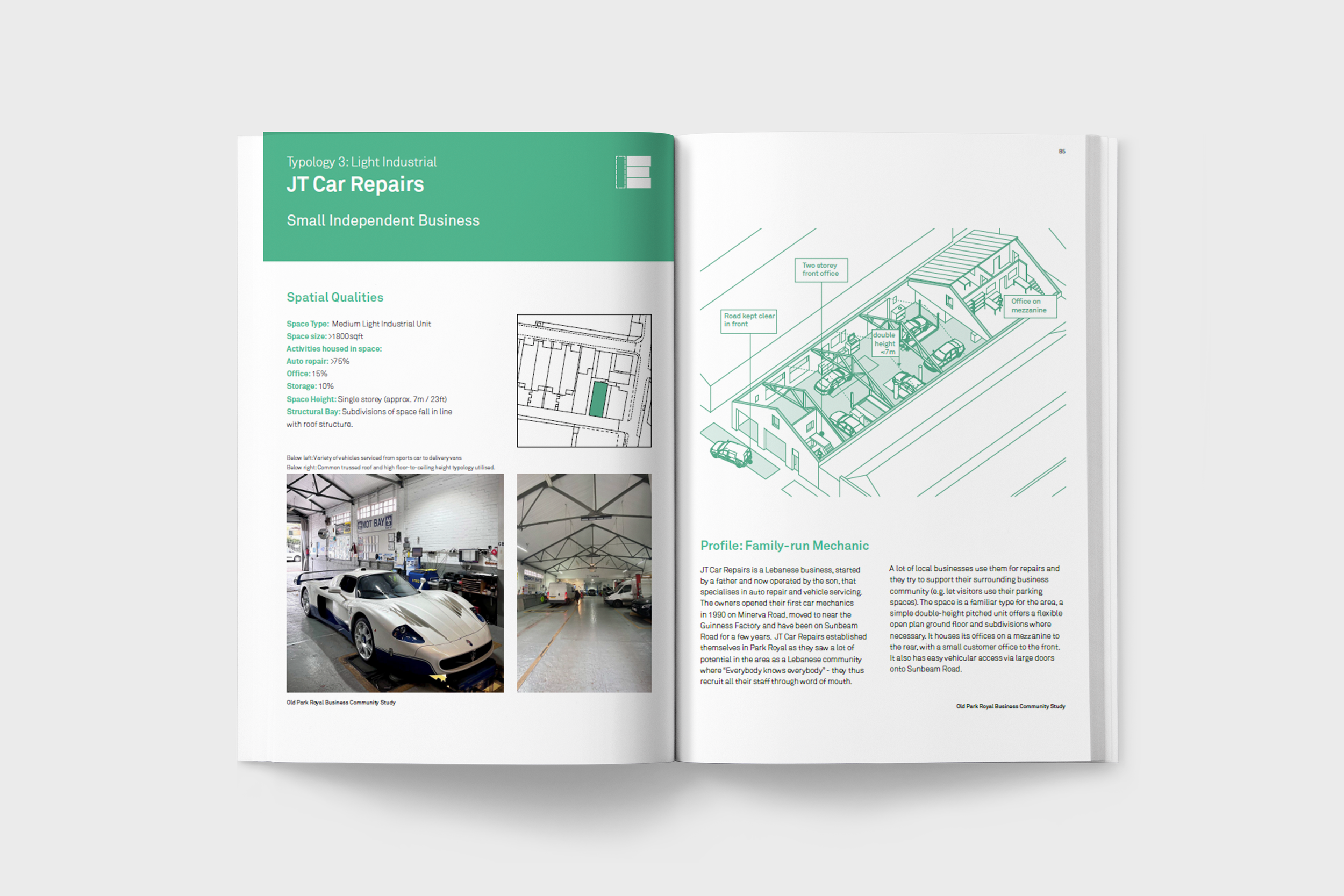 Architecture 00 were commissioned by the OPDC to undertake research into the diverse industrial business ecosystem of Old Park Royal. With a specific focus on minority ethnic businesses, the research attempted to uncover the cultural diversity of small business enterprises in this dense and well-established Strategic Industrial Location (SIL). The report unpacks the socio-cultural significance of the area, inter-business relationships, supply chains, spatial typologies and more, generating informed recommendations for how to support these businesses.